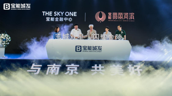 作为本次论坛的焦点环节,几位嘉宾与宝能领导一起进行了南京宝能主城双项目的案名发布启动仪式,自此宝能南京将开启主城滨江新篇章。其中,燕子矶G01项目案名为【宝能金融中心】、板桥新城G14项目案名为【宝能翡丽河滨】,引入了宝能城发四大产品线的两个——地标综合体及高端居住,两大项目一南一北傲立主城,引发全民期待。