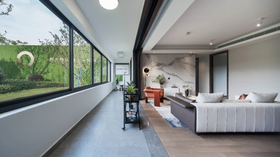想象一下这样的生活场景:超尺度横厅里正在上演一场家庭派对,窗外就是城南河的一线景致,客人坐在沙发上闲聊,女主人在西厨准备沙拉、烘焙甜品,孩子和小伙伴们嬉戏、打闹……